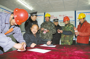 天津北方网讯:天津市公安局红桥分局南头窑派出所民警日前在“政风行风”评议大走访活动中了解到,辖区内部分异乡农民工未能如期从工程承包商处领到工资而不能回家。民警及时地与该工程承包商沟通协调,最终拖欠的10万余元工钱如数发放给农民工。图为农民工在民警见证下领到被拖欠的工资。通讯员詹望弘洋本报记者王晓明摄