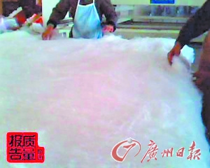 | 一家家庭作坊的生产者透露,除了少量蚕丝外,被子里其他的填充物是一种俗称涤纶的化纤纤维。 |