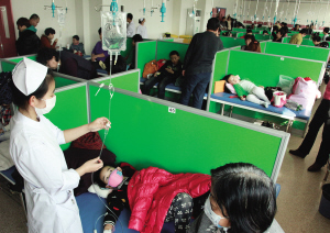 昨天10点,记者来到儿童医院,看到门诊大厅已是“人山人海”。导诊台护士介绍,近半个月,来看病的患儿明显增多,仅内科普通门诊,一天的挂号人数就可达七八百人。在输液门诊,记者看到可容纳二三百人的大厅“座无虚席”。儿童医院呼吸科主任万莉雅介绍,冬季是孩子们流行性感冒的高发期。此外,本市每隔4-6年便要经历一次支原体肺炎的自然流行期,由于正好赶上这个流行高发期,因此今年本市患儿呈现出支原体肺炎重症患者较多的特点。