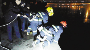 天津北方网讯:昨日凌晨2:30许,一对情侣抄近路横穿结冰的海河时,冰面突然塌陷致两人落入水中,路人见状及时搭救并报警,民警、消防员、120急救人员迅速赶到现场,成功从冰窟中将落水者救起。据了解,情侣中女青年最先被救出,情况较好,男青年因溺水时间较长,被急送市一中心医院东院抢救,截至记者发稿时,其仍在医院救治中。