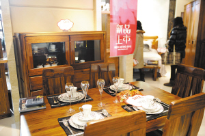 1月2日,由今晚传媒集团《今晚经济周报》与红星美凯龙共同举办的第二届天津实木家具节在红星美凯龙红桥店举行,吸引近百家实木家具企业参与。图为本次家具节上的展品。