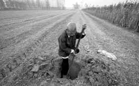 | 2010年9月23日,河南兰考,这名被抚养了6个月的智障孩子因病死亡,他被拉到很远的地方埋掉,孩子的眼仍微睁,似乎还带着对这个未知世界的一丝眷恋。他是袁厉害捡回的第21个婴儿,也是第10个因病而亡的婴儿。 |