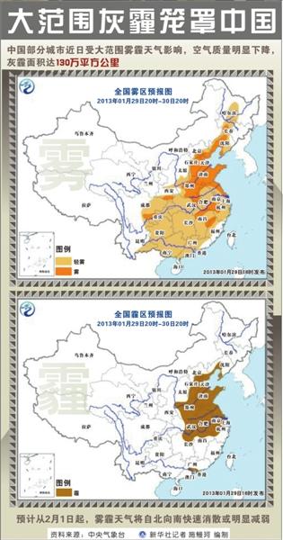 根据气象部门预报,今天夜里起,我国中东部地区自西向东将有一次大范围雨雪天气过程,大范围雾霾天气影响将有所减轻。但29日下午至30日白天,我国中东部地区仍将持续大范围雾霾天气。