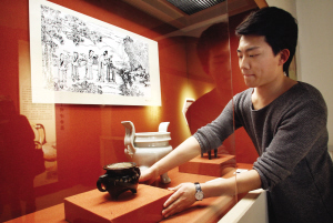 除珍稀沉香样本外,此次展览还有珍贵的古代香器,如明成化素三彩鸭形香熏,1987年出土于景德镇市珠山东北侧明清官窑遗址成化地层,分上下两截,上半截为盖子,下半截用于盛装香料。明代在江西景德镇设置窑厂,专为皇家生产御用瓷器。据文献记载,官窑烧制大量相同的瓷器,一般只有几件是贡品,为防止流入民间,落选的御瓷必须全部打碎,就地掩埋。这件素三彩鸭形香熏就是工作人员从大量出土瓷器碎片中细致筛查、精心粘接而成的,为国家一级文物,全国仅存一件,是特地从景德镇市陶瓷考古研究所借展,来天博展出的。