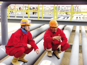 李爽在尼日尔项目的主要工作是油气生产线的监控。“一个阀门,我听着管道中石油流动的声音,我就知道拧到什么位置是最合适、最安全的。”李爽对记者说道。每天李爽都要亲自巡查三趟生产管线,每趟徒步要走3公里左右。由于项目建在沙漠中,脚下只有沙地,人长期行走在沙地上大腿上部的关节就会异常酸痛。而当地恶劣的环境更使工作的难度倍增:尼日尔是世界上最热国家之一,当地夏季一般温度都在40摄氏度以上,冬季也有30多摄氏度,极端天气温度高达60多摄氏度,生产设备表面则达到80多摄氏度,碰到就会灼伤。再“全副武装”上严严实实的工作服、安全帽、4斤重的靴子以及防沙尘的头巾……以这样的装束在高温下工作,其艰苦是很难想象的。大港油田派驻的团队在阿加德姆油田投产生产的过程中,未发生一次事故,未出现一起人身伤害,未泄漏一滴原油。凭借这样的卓越表现,项目越来越离不开他们,在单位的要求下,李爽等人只好一留再留,一晃就是两年多。