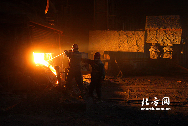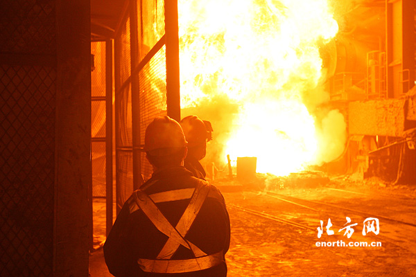 据了解,电炉生产车间4个班次中,每个班次7个人。其中,班长负责保障本组的安全、生产质量、检查设备和人员的管理;电炉主控室1位工人负责监控电脑、送电、加渣料;氧枪室1位工人负责向电炉吹氧气、看护炉罐;天车指挥主要在电炉车间工作负责加料、兑铁水;其他人员主要负责现场测温、取样。