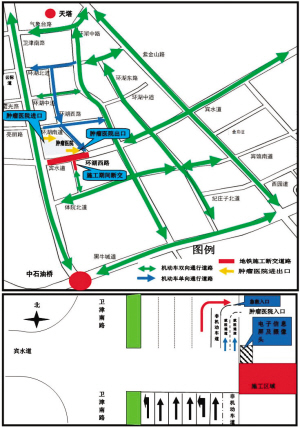 天津北方网讯:日前,本市地铁5、6号线肿瘤医院站开工建设,由于车站主体施工需要破路,地铁集团与市交管部门研究调整了周边道路交通组织措施。调整后,进出肿瘤医院的唯一道路成为名副其实的“生命通道”。
