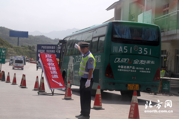 天津北方网讯:四川芦山20日8时02分发生7.0级地震,北方网记者第一时间赶赴地震灾区。途经成雅高速时,记者了解到,该高速已被确定为救援通道,社会车辆不能通行,确保救援车辆及物资在最快时间内到达灾区。(记者 辛华水)