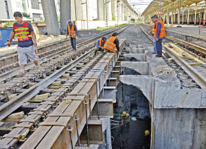 天津北站百年地道桥开始正式顶进。为不影响铁路正常运行,施工作业采取新桥双向顶进与既有桥拆除同步进行的方法,新桥建成后将使桥上铁路运输更加安全,桥下车辆通行更加顺畅。本报记者张磊摄