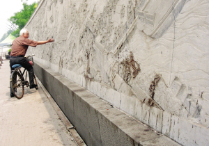 此外,本市“天津之眼”附近的潞河督运图百米浮雕上,部分浮雕不知道被什么染料“涂鸦”,让人看了心痛。