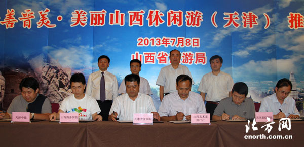 天津北方网讯:7月8日上午,山西省旅游局在天津市举行了晋善晋美·美丽山西休闲游(天津)推介会。山西省、天津市两地旅行社代表签署了互送客源合作协议。