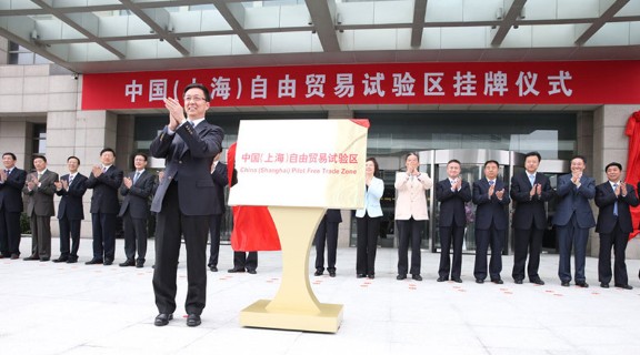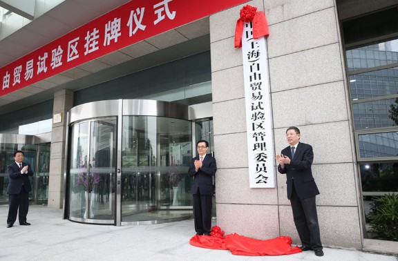 9月29日,中国(上海)自由贸易试验区举行挂牌仪式。该自由贸易园区总面积为28.78平方公里,范围涵盖上海市外高桥保税区、外高桥保税物流园区、洋山保税港区和上海浦东机场综合保税区等4个海关特殊监管区域。图为中共中央政治局委员、市委书记韩正出席仪式,并为“中国(上海)自由贸易试验区”挂牌。汤彦俊摄