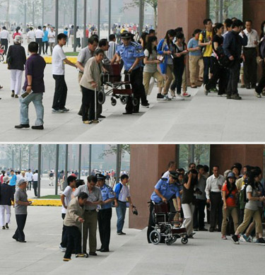 当日中午,工作人员已经将正式标识贴好,下午三点,记者在“六重门”票务中心的引导标识上看到写有“残疾人通道”几个字的临时标识,依照标识指引,记者看到正门左侧的墙壁上、残疾人通道的围栏上也贴上了同样的引导标识,过了残疾人通道便是入口,标识变为“残疾人入口”“请按门铃”几个字。这些标识在正门处非常明显,每个5米就能看到一个标识。“刚看到这些标识,觉得博物馆越来越人性化了,这些残疾人引导标识,很醒目,给残疾人带来了方便,社会关爱行动不方便的弱势群体,老百姓看了也很欣慰。”市民王大爷说。 【详细】