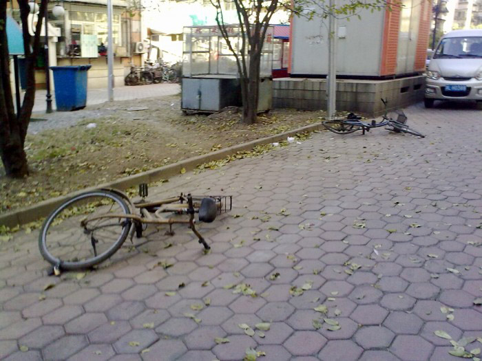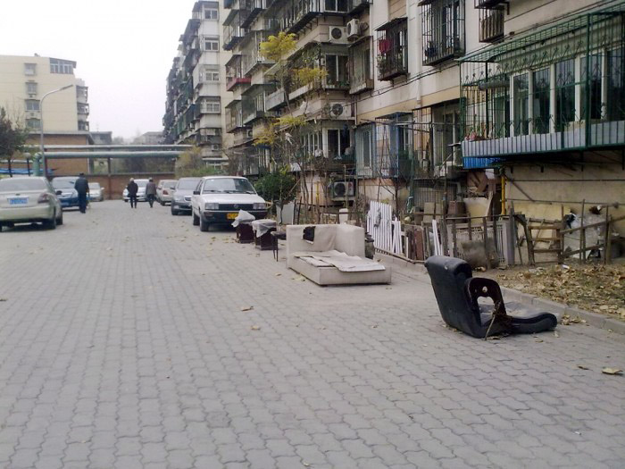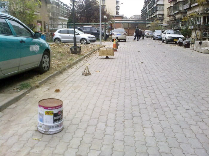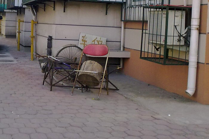 有些车主装地锁占车位,被居委会和物业清理过几次,改成用自行车、木桶等五花八门的物品占车位,是为了减少违规后被清理的成本。