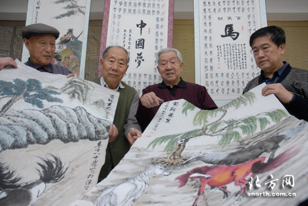 12月27日,和平区朝阳里社区开展“跃马迎新春”书画展活动,社区艺术家们一展身手。