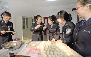 到了开饭时间,楼道里飘起了饺子的香气。小丽吃上了她期待的饺子,她说,没想到在拘留所里过年,并不是当初自己想象的那样,而是处处体现着人文的关怀,管教民警和自己一起包饺子,大家还可以在拘室里贴吊钱、吃零食、看春晚,这样的拘留所让她觉得挺温馨。