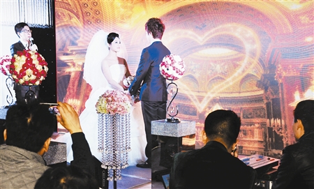 昨天是情人节,一场别开生面的“模拟婚礼秀”在本市首家个性化主题婚礼体验馆亮相。