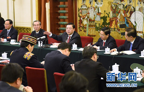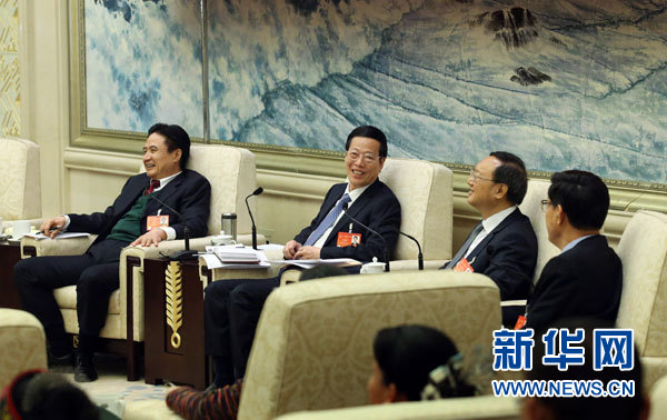 中共中央总书记、国家主席、中央军委主席习近平,中共中央政治局常委、国务院总理李克强,中共中央政治局常委、全国人大常委会委员长张德江,中共中央政治局常委、中央书记处书记刘云山,中共中央政治局常委、中央纪委书记王岐山,中共中央政治局常委、国务院副总理张高丽,9日下午分别参加了十二届全国人大二次会议一些代表团的审议。
