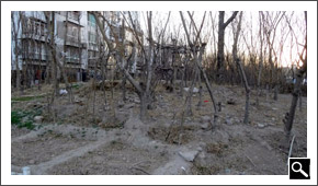 在龙悦花园小区门口,记者看到绿化带的一些树木、花草被砍伐,土地被部分市民圈占,种上了蔬菜。这些蔬菜很明显得到了市民的“细心呵护”——蔬菜周围被清理的干干净净,刚刚浇上水,而原有的绿化带植被却遭了秧,树木被砍得七零八落、草皮被挖走……