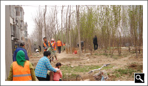 园林工人对圈地种菜进行清整