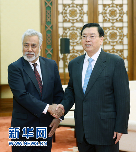 4月8日,全国人大常委会委员长张德江在北京人民大会堂会见东帝汶总理沙纳纳。新华社记者姚大伟摄