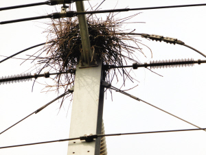 京沪高铁沿线树木较少,天气变暖后,高大坚固的供电杆塔就成为小鸟最理想的筑巢地点。天津维管段的田卫平告诉记者,接触网是给高铁提供电力的,鸟窝随意建在上面,达不到绝缘距离,遇阴雨天极易引发短路,造成线路跳闸。另外,小鸟造窝除了树枝外,为了坚固也会用一些金属丝,引起线路跳闸,使运行中的高速动车组突然断电停车,十分危险。