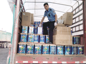 日前,执法人员在京津公路对一辆两侧盖有苫布的花栏式车辆进行检查时,发现车厢内装了100余桶油漆及稀料。据介绍,油漆及稀料系易燃液体,必须由专业危险品运输车辆进行运输。在依法对当事人所属物流公司实施了行政处罚后,为确保这100余桶危险货物安全运达目的地,执法人员要求更换具有专业危险货物运输资质的车辆将货物运走,有效消除了安全隐患。