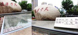 昨天上午,记者来到南运河畔的“天子津渡”公园,在公园入口附近有一块“天子津渡”的石碑,石碑下方有一处玻璃板,玻璃板分为2层,石碑底座的玻璃板稍高,两侧稍低,玻璃板下方有30块2米多长的条石。靠近南运河北路一侧的玻璃板上写着“请勿踩踏”的字样,可在靠近南运河一侧的玻璃板上却有“爱护文物,小心地滑”的字样,两块牌子相距不过10米。