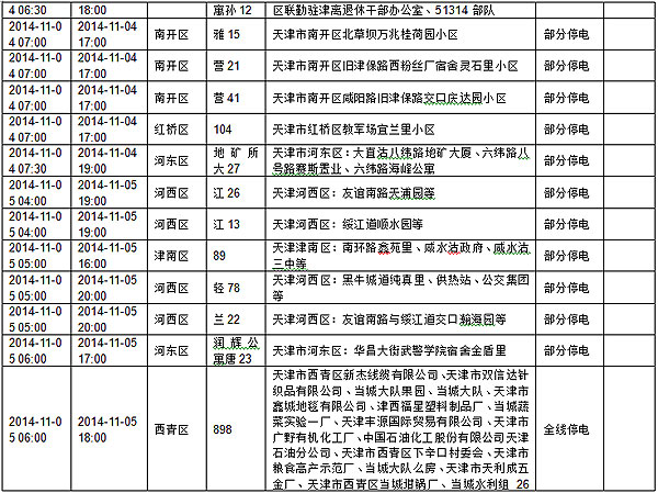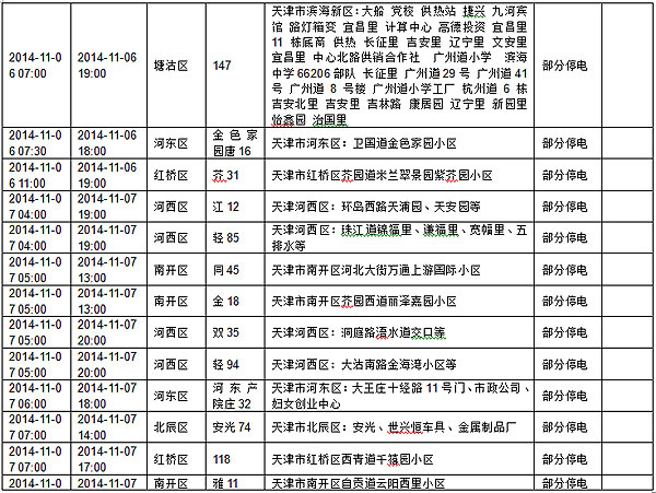 欲获取更详细停电信息,请登录网站WWW.TJ95598.COM或致电电力服务热线95598咨询。