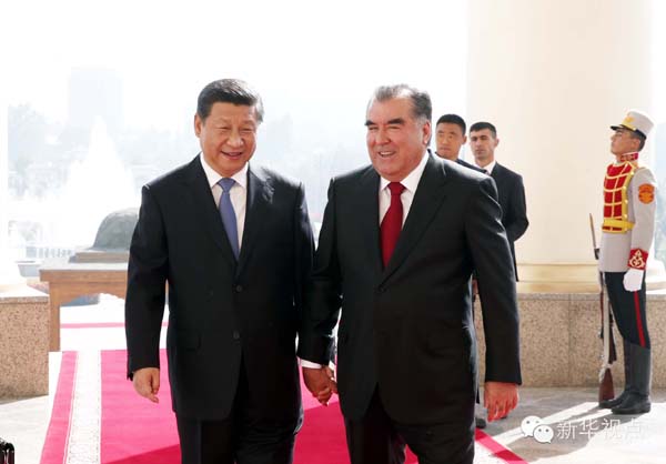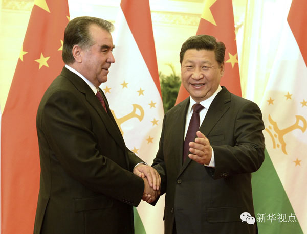 不到两年,习主席和拉赫蒙总统五次相见。去年5月,习主席上任刚两个月,拉赫蒙总统就来到北京,与习主席共同宣布两国成为“战略伙伴”。此后,在比什凯克,在上海,在杜尚别,他们每次都相谈甚欢。