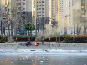 天津北方网讯:昨日14时许,在河北区北塘排污河旁,一名男子在亲水平台上烧电线,冒出阵阵浓烟,散发出一股难闻的味道,影响了环境。现场看到,一名男子手里拿着木棍,不时翻挑着燃烧的电线。他自称是废品回收人员,几乎每天都会把回收来的带有铜芯的电线点燃,据他说,烧电线是为了要电线里面的铜芯。“这些能卖二三十元呢!”记者希望有关部门能够对这种行为予以制止,保护我们的环境。