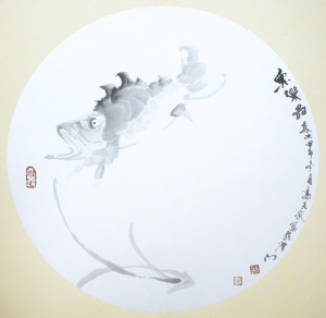▲一滴墨两条鱼,只缘最爱鱼水情 高天武