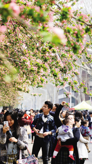天津北方网讯:昨天清明小长假首日,恰逢天津大学第四届“海棠季”校园开放日,700余株盛开的海棠及天津大学组织的各种校园活动,吸引了2万多市民进校赏花游玩。