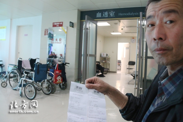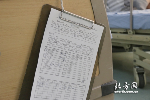“配型结果很快就可以出来了,我希望尽快做完手术,让女儿早日康复。”坐在透析室外的王树强,拿着化验结果指引单告诉北方网新媒体记者。
