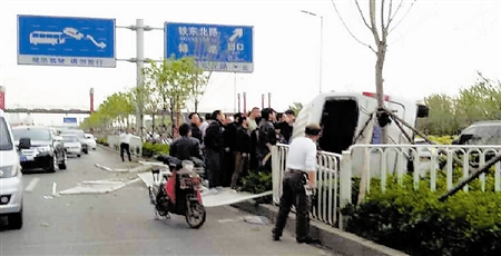 天津北方网讯:昨日15时许,一辆面包车侧翻在铁东路绿化带内(右图),事故发生后,有从此经过的热心车主立即用木棍等工具撬开前挡风玻璃,为车内两名女士打通逃生通道,将两人救出。