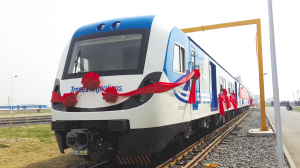 天津北方网讯:近日,我国首列出口阿根廷米轨内燃动车组在位于华明高新区的天津北车轨道装备有限公司下线,月底将通过海运发往阿根廷。这是中国内燃动车组首次出口阿根廷,也是中国企业在南美内燃动车组市场的最大订单。区领导尚斌义、杨茂荣、王连成、白凤祥出席仪式。