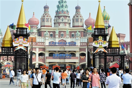 航母主题公园俄罗斯风情街的大型彩门宏伟壮观。