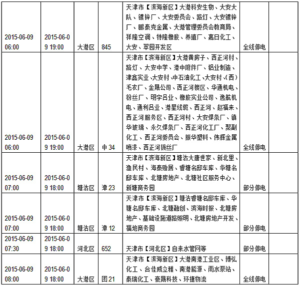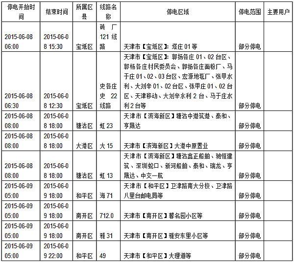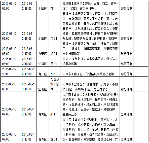 欲获取更详细停电信息,请登录网站WWW.TJ95598.COM或致电电力服务热线95598咨询。