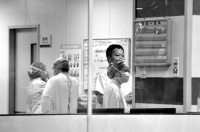 金某入院后的前4个小时,李春梅几乎是“零距离”接触患者,相比其他病人,她认为最大的障碍是语言不通,沟通起来很困难。“他听不懂英语,我不会韩语,沟通首先靠手语,无法用手势表达的就请同事用翻译软件帮忙写出来,觉得对的就请点头。”此外,遇到需要详细沟通的,则会请翻译人员隔着玻璃进行通话翻译。“电话是通畅的,他有时也会打电话回家。”李春梅介绍。