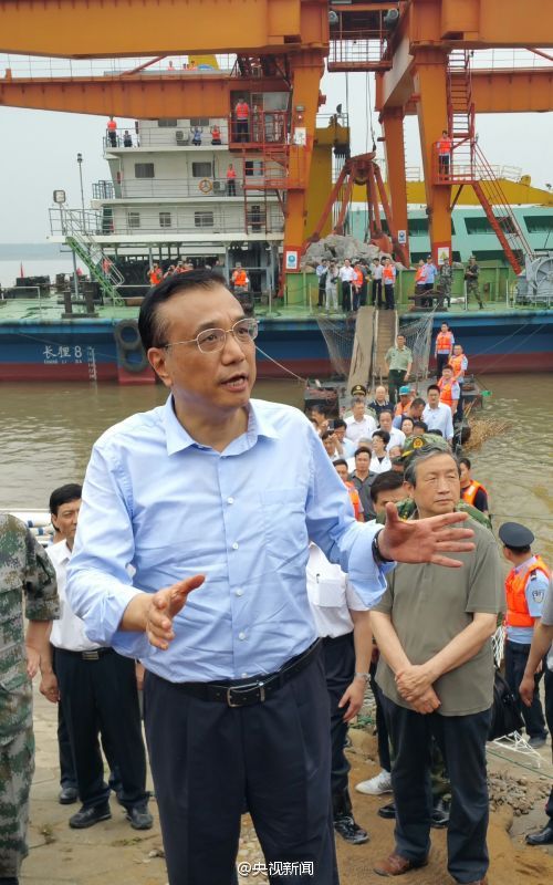 【李克强勉励搜救人员:救人是第一要务】李克强从指挥船上走到岸边,对在场的救援人员说,要根据刚才的成功经验,抓紧时间搜救乘客,这是当前第一要务,后续还有大量工作,你们肩负重担,希望继续发扬人民利益高于一切的精神,尽最大努力,把救人等各项工作做好!