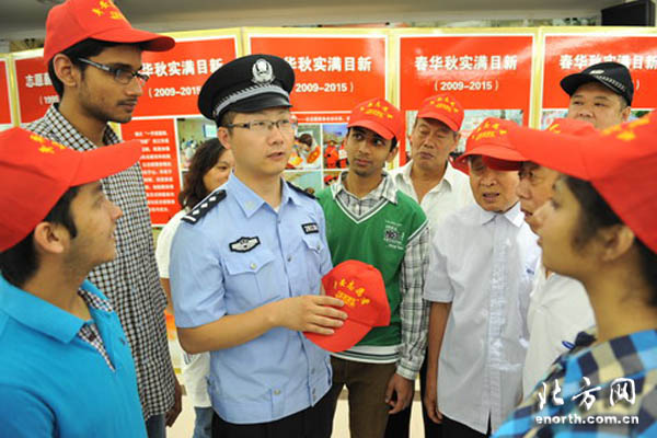 天津北方网讯:为不断推进和谐警民关系建设进程。近日新兴所民警带领新加入的外国留学生志愿者,来到志愿者发祥地朝阳里社区,参观了志愿者展览馆。活动中,民警与老社区志愿者一起向他们介绍了志愿者服务的光荣历史。通过活动民警既增进了对留学生的了解,促进对外籍人员管理,同时深化了和谐警民关系进程。留学生志愿者纷纷表示,愿意为促进社区治安,社会和谐尽自己的一份力。(通讯员李鹏 单醇伟)