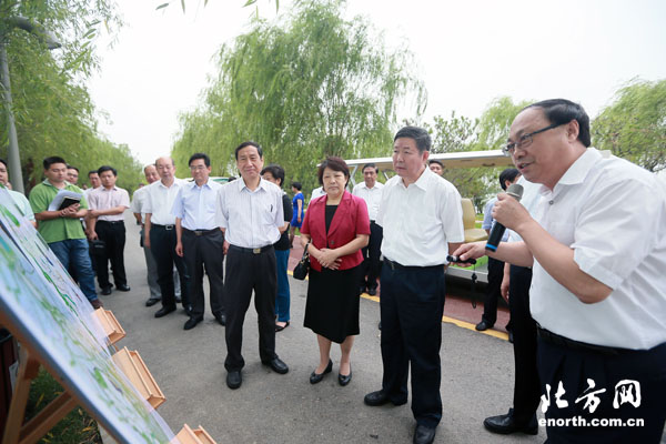 执法检查组听取了市农委、武清区的汇报,实地察看了永久性保护生态区域标桩设定和绿博会建设筹备情况。大家认为,本市美丽乡村建设启动以来,乡村公共服务设施、服务功能显著提升,农村环境面貌进一步改善,切实让农民群众感受到变化、享受到实惠。大家还围绕推进京津冀生态环境保护、加快美丽乡村建设和办好绿博会提出意见建议。