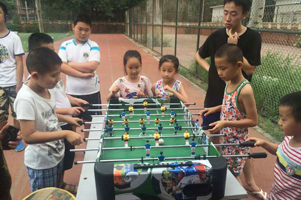 天津北方网讯:由团区委和市青年宫联合开展的“流动青年宫进社区”活动,日前在河北区月牙河街月牙河北里社区举行。青年宫的老师和志愿者来到社区,为社区青少年和社区外来务工人员子女等近百名青少年带来了活字印刷、环保袋制作、桌面足球、纸膜、城市景点步行棋等活动项目,让孩子们暑假中享受到了一场欢乐盛宴,丰富的活动缓解了学习考试的紧张与压力,也吸引了青少年放弃电子游戏、回归社区参加活动。