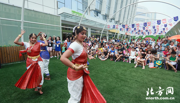 即兴表演,互动交流,一起畅玩……尽管天气炎热,但是现场的气氛一直high到极点,在这场音乐的狂欢中,大家一起感受了各国特色的少儿文化,尽管语言不通、肤色不同,但是大家彼此紧密相连,体验音乐、艺术无国界的魅力。(北方网新媒体记者吴宏 马宬)