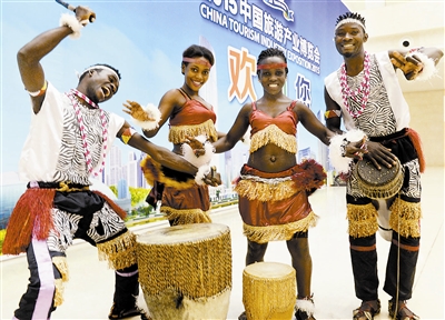 动感的舞蹈、欢快的鼓点、火热的氛围,8名来自马达加斯加的舞蹈演员,脸上画着彩绘、身着传统服饰、手持木鼓,时而跳跃,时而摇摆。这是记者上午在旅游产业博览会国际国内旅游形象展区看到的一幕。