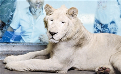 天津北方网讯:天津动物园首次引进的珍稀动物白狮以及雄性长颈鹿,昨天开始与游客见面。