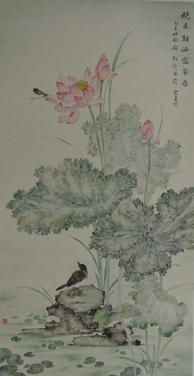 “金秋墨韵”国画精品联展展出了纪荣耀、郑念念最近创作的写意、没骨、工笔等技法花鸟画作,共30多幅精品。
