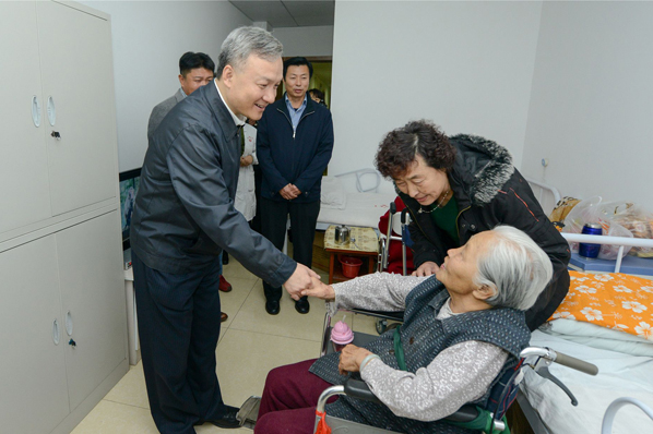 近日,东丽区委书记尚斌义带领有关方面负责人到马三立老人园、新立托老所、东丽养老中心等地查看养老设施,并看望老人,向老人们表达节日问候和良好祝愿。