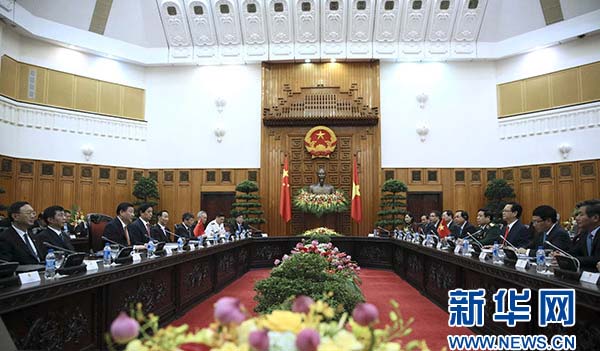 阮晋勇表示,习近平总书记、国家主席这次对越南进行国事访问,将对越中两国全面战略合作伙伴关系发展产生积极推动作用。近年来,两国领导人密切往来,就深化双方广泛领域合作达成许多重要共识。我完全赞同习近平总书记提出的推进两国关系的4个重点工作方向。越中两国应保持高层和各层级交往,提升经贸合作,加强金融合作。越方赞同中方的“一带一路”倡议,愿为中国企业来越投资经营提供便利条件,双方可以认真研究实施口岸便利措施。双方要增进两国之间相互了解和边境地区交流,深化人民特别是青年交流。越方愿同中方共同努力,妥善管控和处理好分歧。