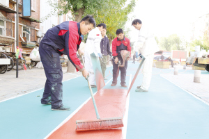 据悉,自今年7月份以来,集贤里街对泰来东里社区环境进一步打造,对社区小广场、道路等进行提升改造,扮靓小区环境。正在打造的花园式社区小广场建成之后,将成为集休闲、健身、文化于一体的综合性社区休闲场所,进一步提升美丽社区、清洁社区成果,服务于社区居民日常生活。街道工作人员对记者表示,今年首先在泰来东里社区使用这种路面彩色喷绘材料,如果居民反映不错的话,该街准备明年在其他2-3个社区进行推广,美化社区环境。